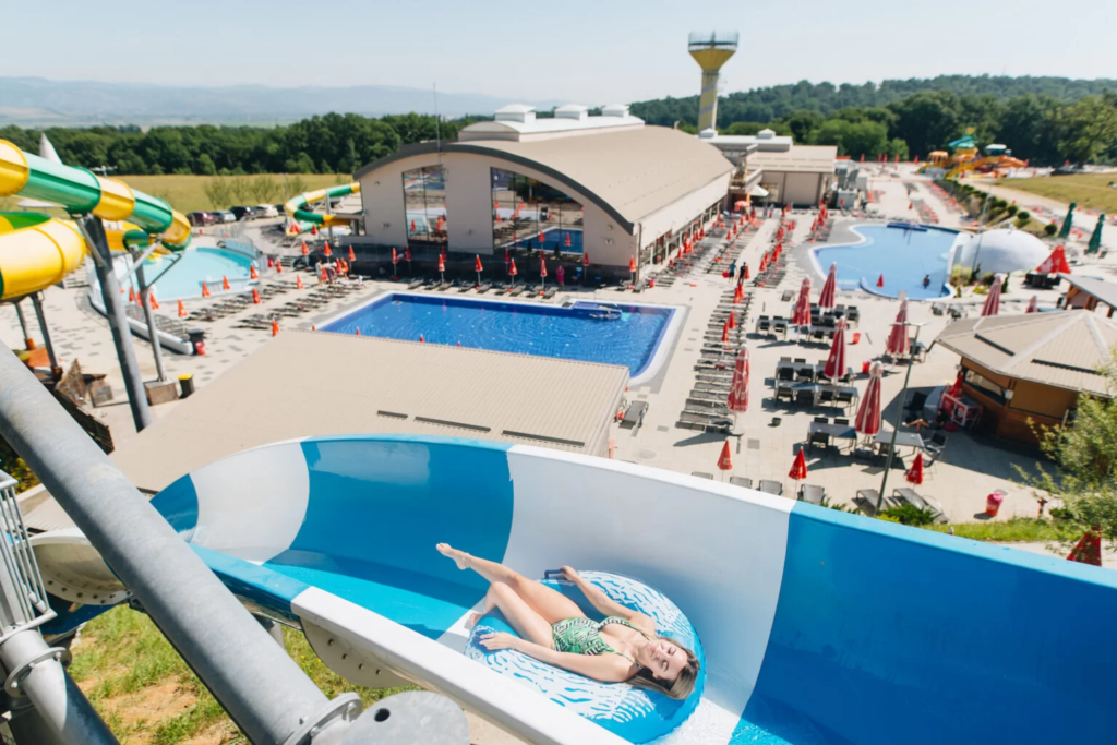 Adrenalină şi relaxare, intr-un complex cu două zone, una exterioara, iar cealaltă acoperită, adună nouă tobogane, cu accesorii şi diverse funcţii.