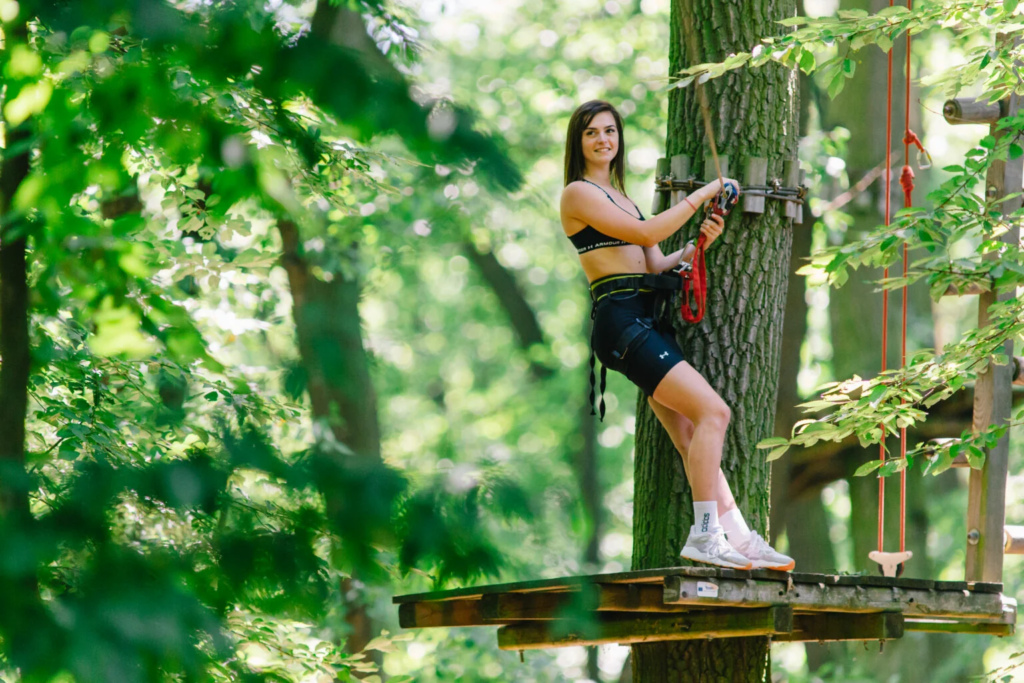Pregatit de aventura? Ei bine, ai de parcurs opt trasee, cu 90 de elemente de catarare, care au dificultate progresiva (galben, verde, albastru, rosu si negru).